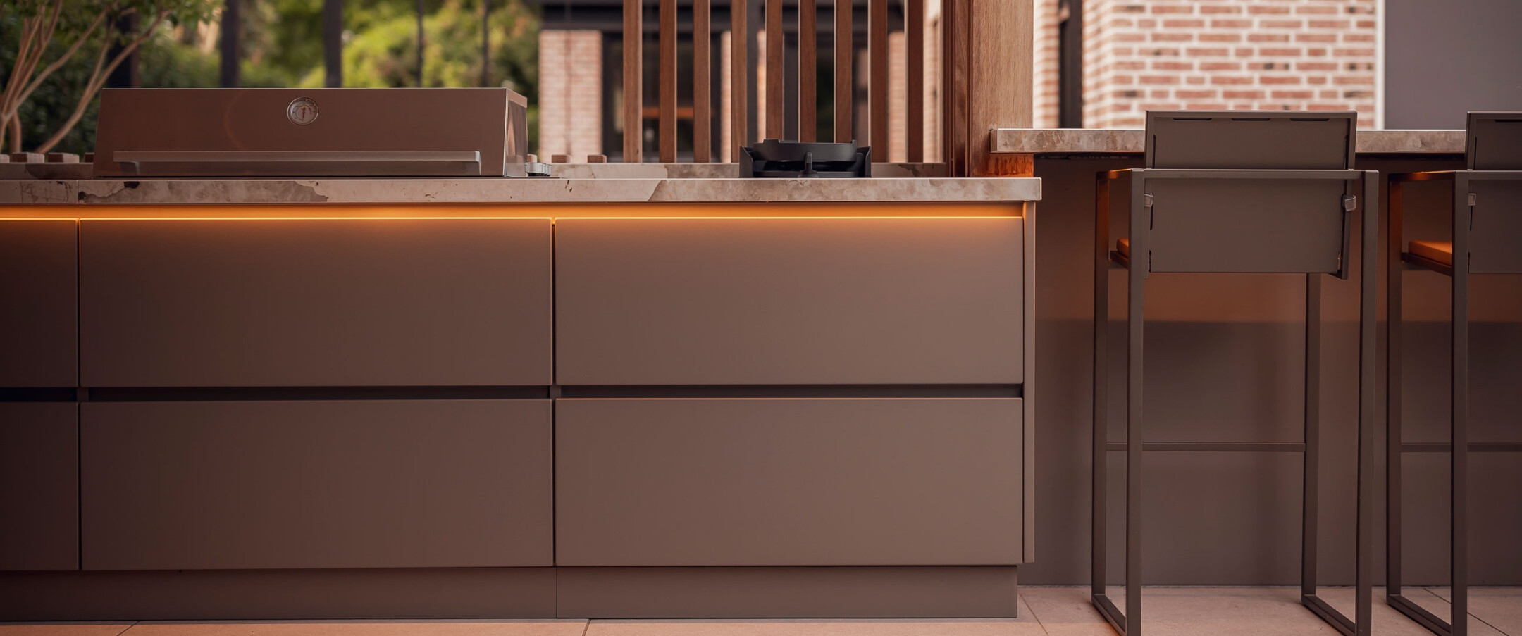 Al onze buitenkeukens hebben een onderscheidend Italiaans design, waarmee je je buitenruimte een stijlvolle uitstraling geeft. Of je nu kiest voor een luxe of een meer neutrale look, onze selectie aan werkbladen, frames en frontjes biedt voor elke smaak een passende optie. Ontdek meer over de materialen van BORLEY’s Taste.